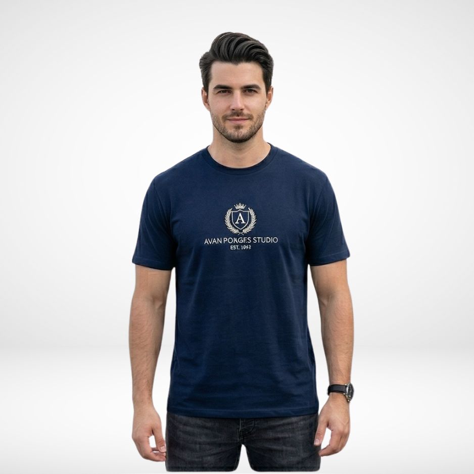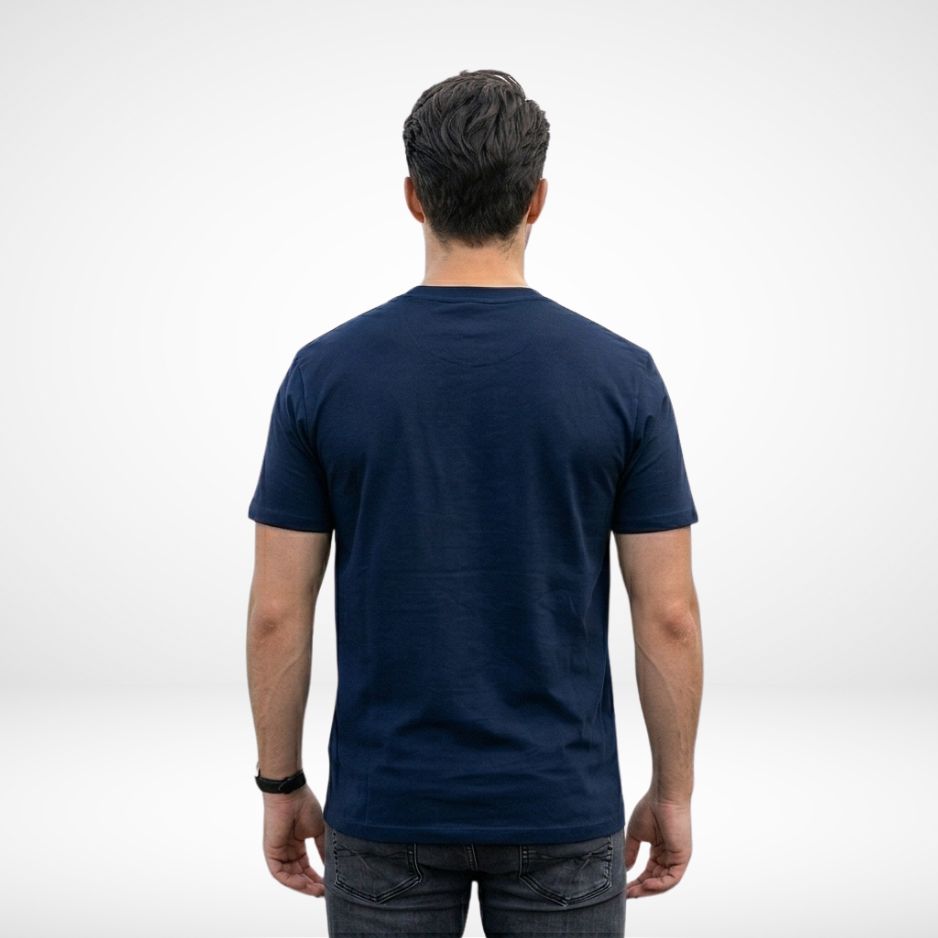 Premium navy blue t-shirt featuring a sleek and minimal logo design, crafted for everyday comfort and modern style.